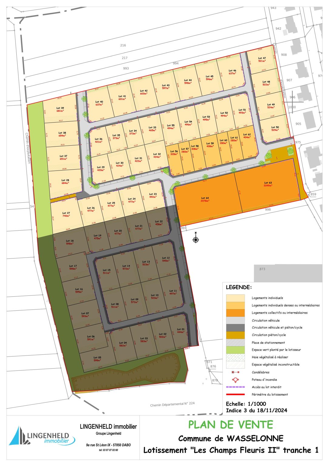 Idéalement situé à proximité du collège, des infrastructures sportives et du terminal du TSPO, ce lotissement vous offrira un cadre de vie harmonieux et attractif. Ne manquez pas cette occasion unique d’acquérir un terrain à bâtir dans une commune dynamique et accueillante.